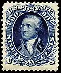 - ↑ Série de 15 timbres-poste, avec différentes personnalités : « Second Bureau Issue ». Portrait de Washington d'après l'Athenæum Portrait, peint par Gilbert Stuart.