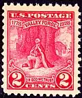 | 1928 | 2¢ rouge/violet « Washington at Prayer » | Au-dessus « U.S. POSTAGE 1778 VALLEY FORGE 1928 » en dessous « IN GOD WE TRUST 2 CENTS 2 » | ----- | --- [note 9] | Bureau of Engraving and Printing | ||