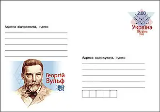 Enveloppe ukrainienne dédiée au 150e anniversaire de George Wulff.