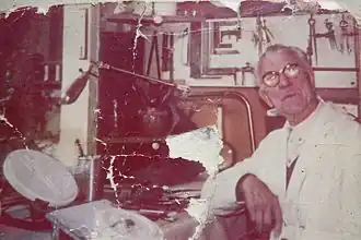 - Georges Contaux dans son atelier en 1970, travail sur moulage de plâtre.