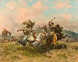 - La chasse à l’antilope, huile sur toile, 73 × 92 cm. Paris, vente Artcurial le 01/12/2010