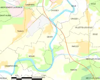 - ↑ « Orthodromie entre Gevry et Tavaux », sur fr.distance.to (consulté le ).