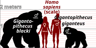 Gigantopithecus (du grec γίγας gigas « géant », et πίθηκος pithekos « singe »), parfois francisé en Gigantopithèque, est un genre éteint de singes appartenant à la sous-famille des ponginés. Il est attesté en Asie du Sud-Est à partir d'un peu plus de deux millions d'années et jusqu'à environ deux cent cinquante mille ans[1],[2] avant le présent. On a trouvé des fossiles en Chine, au Viêt Nam, et plus récemment en Indonésie[3]. Bien que les seuls fossiles connus de Gigantopithèque soient de nombreuses dents isolées et quelques mandibules, ils suggèrent que cette espèce est le plus grand singe qui ait jamais existé, avec une taille comprise entre deux et trois mètres, et une masse de l'ordre de 250 kg.