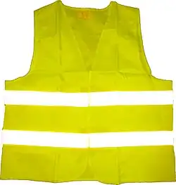 Si ce type de vêtement existe en plusieurs couleurs, le jaune est le plus courant, au point que l'expression « gilet jaune » [ʒile ʒɔn] est souvent utilisée pour désigner ces gilets de façon générique[1].