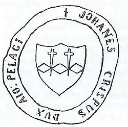 Les Crispo étaient probablement originaires de Vérone. Francesco Ier Crispo, le fondateur de la dynastie, était seigneur de Milos, donc vassal du duc de Naxos et son cousin par alliance. Il s'empara du trône de Naxos après avoir assassiné le duc légitime Niccolo III dalle Carceri[22]. Son fils Giacomo Ier Crispo accentua sa légitimité en épousant lui aussi une Sanudo. Contrairement aux Sanudo, les Crispo appliquaient la loi salique excluant les femmes de la succession. Le trône passa donc souvent à une branche collatérale de la famille. Ainsi, Giovanni IV descendait en ligne directe de Francesco Ier, le premier duc, mais ensuite seulement du septième duc. Dans les intervalles de minorité ou de potentielle vacance du pouvoir, les autorités vénitiennes intervenaient. Ainsi, après l'assassinat de Giovanni III Crispo, les Naxiotes demandèrent à la république de Venise d'assurer la régence pendant la minorité du fils de Giovanni III, Francesco[23]. Celui-ci devint fou et assassina son épouse. Il fut déposé et enfermé. Giovanni IV, mineur, hérita du duché[24].
