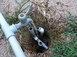 Le lixiviant (solution de lixiviation) est injecté à travers des tuyaux en plastique, qui sont insérés dans un trou de lixiviation.
