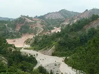 Un aperçu de l'un des gisements d'éléments de terres rares des régolithes (un type de mine d'éléments de terres rares) dans le sud de la Chine[1]