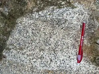 Les granitoïdes enrichis en éléments de terres rares lourds se forment par auto-métasomatose. Il s'agit d'un processus d'altérations chimiques du magma felsique récemment cristallisé par le fluide hydrothermal restant (par exemple l'eau, le CO2) au stade ultérieur de la cristallisation du magma[19]. Au cours de l'altération chimique, par diverses réactions chimiques avec les fluides hydrothermaux, les éléments de terres rares lourds sont ensuite introduits dans les minéraux secondaires le long des veinules[19].