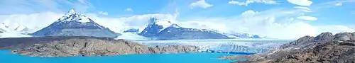 Panoramique du glacier d'Upsala vu de front, en février 2011.