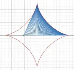 L'enveloppe du segment de droite dans l'exemple ci-dessus est un astroïde[2].