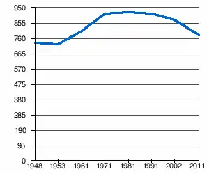 | 734 | 723 | 810 | 917 | 924 | 916 | 874[2] | 784[1] |