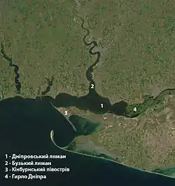 - ↑ Le liman du Dniepr dans le eLexikon, consulté le 26 juillet 2015.