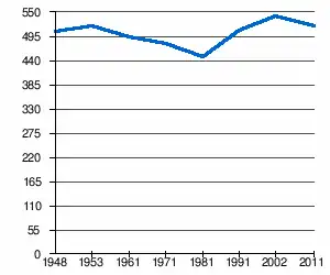 - 1 2 (sr + en) « Livre 20 : Vue d'ensemble comparative de la population en 1948, 1953, 1961, 1971, 1981, 1991, 2002 et 2011, données par localités) » [PDF], pages du recensement de 2011 en Serbie - Institut de statistique de la république de Serbie, (consulté le )