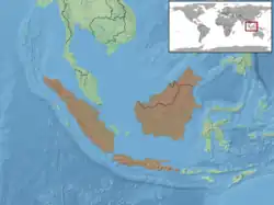 Cette espèce se rencontre en Indonésie à Java, à Sumatra et au Kalimantan, en Malaisie et en Thaïlande[1],.