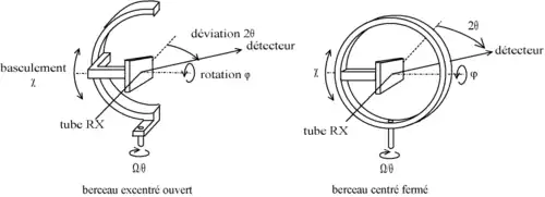 Dans le cas d'un échantillon polycristallin, le dispositif s'appelle un « berceau d'Euler » (Euler cradle), par comparaison aux angles d'Euler. Ce berceau d'Euler peut être centré ou excentré, il peut être ouvert ou fermé ; les berceaux ouverts et excentrés peuvent accueillir des échantillons plus volumineux, mais ils sont plus compliqués à réaliser.
