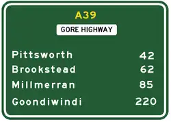 La Gore Highway est un axe routier long de 202 km dans le Queensland en Australie allant de Goondiwindi à Toowoomba. Avec la Goulburn Valley Highway et la Newell Highway, elle fait partie de la National Highway qui relie Melbourne à Brisbane. Elle porte le nom de A39.