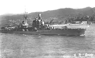 Le , il est attaqué dans le port de Messine et touché par trois bombes américaines de gros calibre. Remorqué le à La Spezia pour être réparé, le croiseur était toujours au bassin le lors de l'Armistice entre l'Italie et les Alliés.