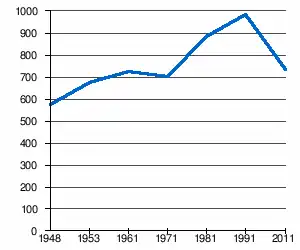 - 1 2 (sq) « Évolution de la population 1948-2011 », sur pop-stat.mashke.org (consulté le ).