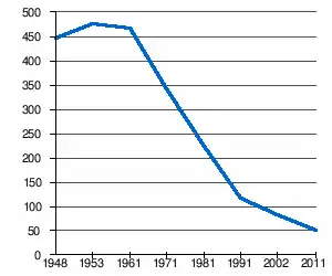 - 1 2 (sr + en) « Livre 20 : Vue d'ensemble comparative de la population en 1948, 1953, 1961, 1971, 1981, 1991, 2002 et 2011, données par localités) » [PDF], pages du recensement de 2011 en Serbie - Institut de statistique de la république de Serbie, (consulté le )