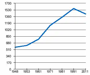 - 1 2 (sq) « Évolution de la population 1948-2011 », sur pop-stat.mashke.org (consulté le ).