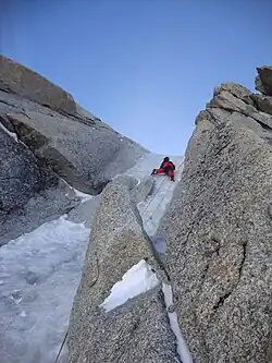 La progression en goulotte nécessite les techniques de cascade de glace et de rocher.
