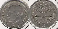 - 10 centimes (1958-1970), en laiton-nickel, François Duvalier