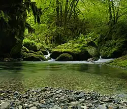 Ce lieu au degré d'humidité proche de la saturation a permis le développement d'une grande forêt luxuriante de buis séculaires aux allures de jungle, avec ses arbres et ses rochers recouverts de mousses, de lichens et de fougères – dont des scolopendres géantes (Phyllitis scolopendrium (L.) Newman) – lui donnant un aspect tropical.