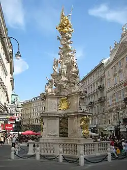 La colonne de la peste (« Pestsäule » en allemand) est une représentation de la trinité au milieu du Graben. Cette œuvre religieuse a été ordonnée par l'empereur Léopold Ier. En 1679, la dernière grande peste ravageait la ville, et l'empereur avait promis de faire ériger un monument de grâce à la fin de l'épidémie.