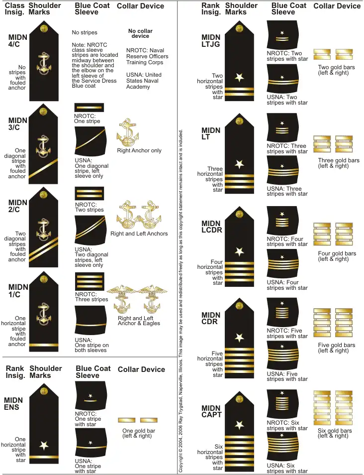 - ↑ Tableau fourni et visible sur la page Midshipman du site http://www.search.com TM.