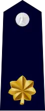 | Équivalence | Sous-lieutenant | Lieutenant | Capitaine | Major | Lieutenant-colonel | Colonel | |