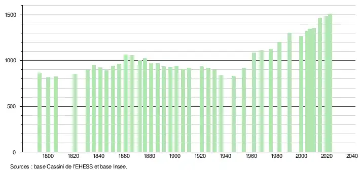 De 1962 à 1999 : population sans doubles comptes ; pour les dates suivantes : population municipale.