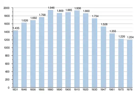 - Source: DGS , de 1831 à 1981=recensements population; à partir de 1990 = nombre d'habitants chaque 1 janvier