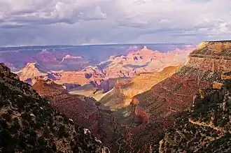 Le Grand Canyon, y compris son vaste système de canyons tributaires, est apprécié pour sa superficie et la grandeur de celui ci, sa profondeur et ses couches exposées de roches colorées datant de l'époque précambrienne. Le canyon lui-même a été créé par l'incision du fleuve Colorado et de ses affluents après le soulèvement du plateau du Colorado, entraînant ainsi le développement du système du fleuve Colorado le long de son chemin actuel.
