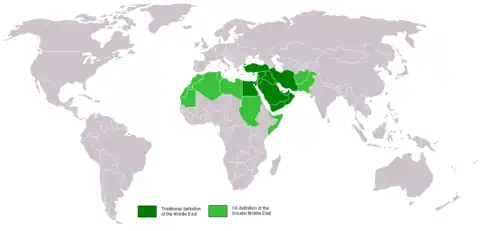 Le « Grand Moyen-Orient » est un terme utilisé par le président George W. Bush et son administration pour désigner un espace s'étendant du Maghreb et de la Mauritanie au Pakistan et à l'Afghanistan, en passant par la Turquie, le Machrek et l'ensemble de la péninsule Arabique. L’expression « Greater Middle East », où greater reste un adjectif comparatif, apparaît de façon épisodique à partir des années 1950 et a commencé à être utilisée de façon plus fréquente dans les analyses stratégiques américaines dès la fin des années 1970, mais c'est véritablement son emploi en 2004 qui a suscité la polémique[1].