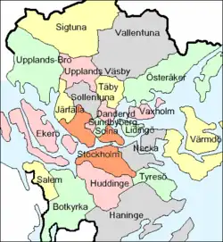 Elle regroupe toutes les communes du comté de Stockholm, à l'exception de Norrtälje, Nykvarn, Nynäshamn, and Södertälje.