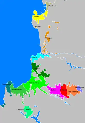 Elle englobe les communes de Valparaiso, Viña del Mar, Concón, Quintero, Quilpué et Villa Alemana.