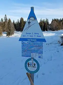- ↑ « Le Jura est traversé par deux itinéraires de ski de fond : la Grande Traversée du Jura (GTJ) sur 180 km majoritairement en France et la Traversée du Jura Suisse (TJS) sur 163 km principalement en Suisse. » CAF, « La Traversée du Jura Suisse », .