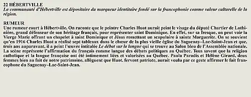La rumeur et la curiosité de la communauté d'Hébertville (Québec, Canada) sont créés par Interaction Qui afin de tisser un fil conducteur légendaire entre les différentes localités de la région Saguenay—Lac-Saint-Jean.