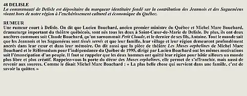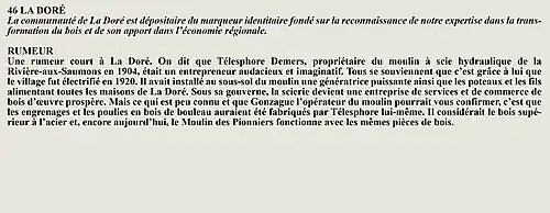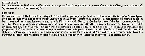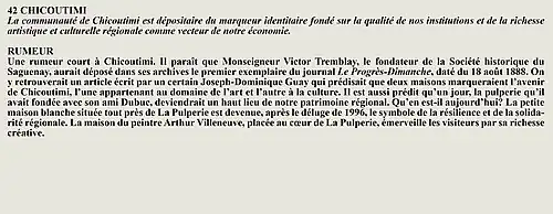 La rumeur et la curiosité de la communauté de Desbiens (Québec) (Québec, Canada) sont créés par Interaction Qui afin de tisser un fil conducteur légendaire entre les différentes localités de la région Saguenay—Lac-Saint-Jean.