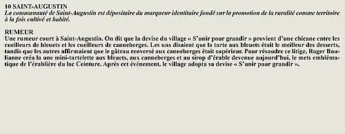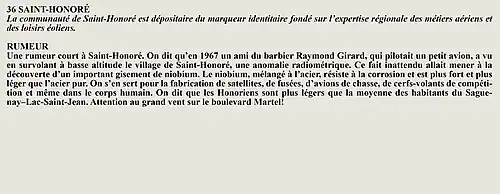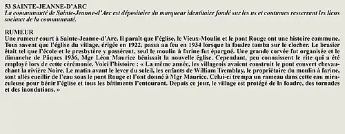 La rumeur et la curiosité de la communauté de L'Ascension-de-Notre-Seigneur (Québec, Canada) sont créés par Interaction Qui afin de tisser un fil conducteur légendaire entre les différentes localités de la région Saguenay—Lac-Saint-Jean.