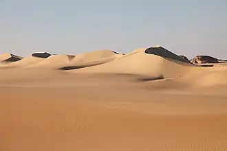 Certaines des dunes de sable sont officiellement reconnues comme étant les plus grandes au monde, une d'entre elles s'étend sur 140 km. Les vagues de la mer de sable peuvent atteindre 100 m de hauteur. Plusieurs réseaux dunaires peuvent se superposer[1], la morphologie des dunes montre une certaine diversité : longilignes, en croissants jointifs (barkhane), étoilées, brillantes sous le soleil, ombres étranges au crépuscule, magnifiques à l’aube.