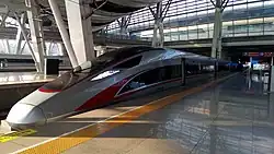 En , la nouvelle gamme des trains à grande vitesse de technologie chinoise à 97 % (une construction en Chine à 100 %) Fuxing Hao (复兴号, , « Renaissance ») est annoncé comme pouvant circuler à une vitesse maximale de plus de 400 km/h[14]. Ces nouveaux trains peuvent rouler à une vitesse commerciale de 250 km/h à 350 km/h sur une voie à grande vitesse améliorée / dédiée. Les trains de la gamme Fuxing abandonnent la numérotation précédée par CRH. Désormais, les nouveaux trains Fuxing portent la marque CR (China Railway), en cohérence avec le nom de la compagnie nationale, suivi d'un nombre marquant la catégorie de vitesse : CR200J, CR300, CR400 et CR450 (en développement pour ce dernier).