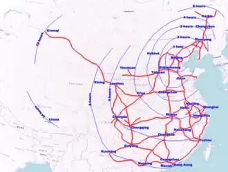 - Couloir Hu-kun (Shanghai - Kunming) : Shanghai - Hangzhou - Nanchang - Changsha - Guiyang - Kunming