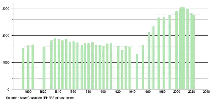 - ↑ Population municipale de référence en vigueur au 1er janvier 2025, millésimée 2022, définie dans les limites territoriales en vigueur au 1er janvier 2024, date de référence statistique : 1er janvier 2022.