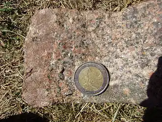 D'autres minéraux accessoires composent la granodiorite : allanite, apatite, épidote, occasionnellement hornblende verte, zircon et zoïsite. Un des minéraux opaques se révèle être de la pyrite.