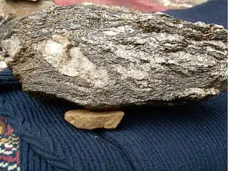 Les pegmatites font également partie des composants minéralogiques, principalement sous forme de dykes ; et à certains endroits sous forme d'amygdales avec de beaux quartz fumés (rare).