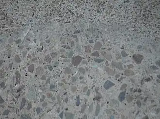 - De produits en béton hydraulique (parpaings, voussoirs, canalisations…) ou de béton prêt à l'emploi, où l'on utilise des sables, gravillons et fillers en mélange avec du ciment.