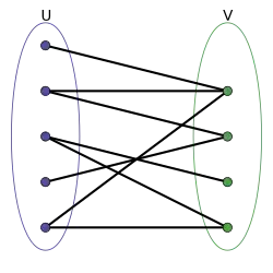 En théorie des graphes, un graphe est dit biparti si son ensemble de sommets peut être divisé en deux sous-ensembles disjoints et tels que chaque arête ait une extrémité dans et l'autre dans .