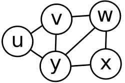- L'intersection de deux cliques maximales chevauchantes est un séparateur qui sépare les différences des deux cliques[3]. Dans le graphe gemme, ce n'est pas le cas : les cliques uvy et wxy ne sont pas séparées par leur intersection y, car l'arête vw relie les cliques et évite l'intersection.