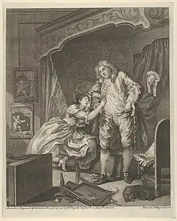 - ↑ (en) « William Hogarth, Marriage A-la-Mode, Plate II, etching and engraving », fiche sur le site du British Museum.